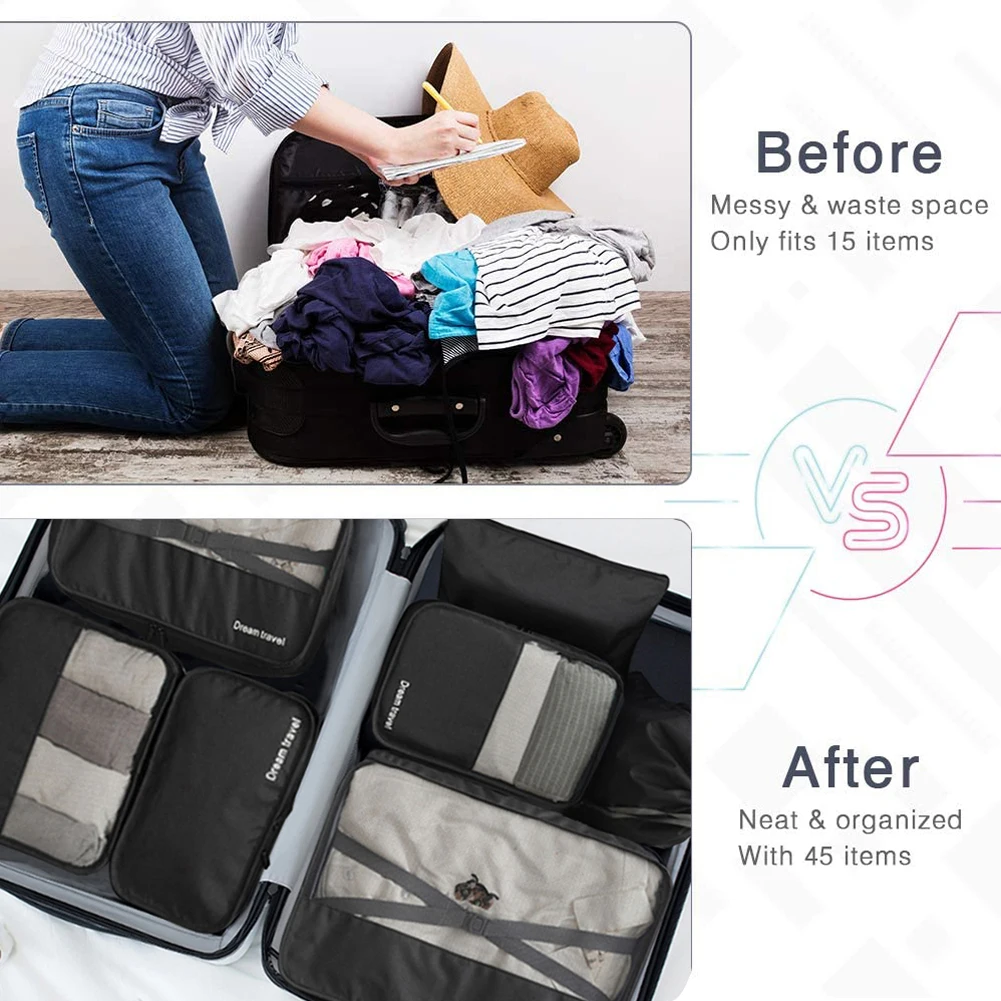 With mesh material on the top of the travel luggage organizers, transparent & breathable, allows you to quickly access and find the item what you need. Save time and space in your suitcase.