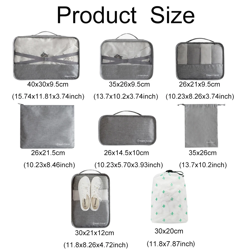 The 10-piece packing cubes will fit in most airline cases, tote bags and backpacks. Ideal for business trips, family ,holidays and camping. You can also use it as a storage bag in your home.